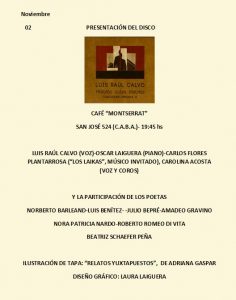 Flyer Definitivo Presentación Disco Luis Raúl Calvo 2 de Noviembre 2018