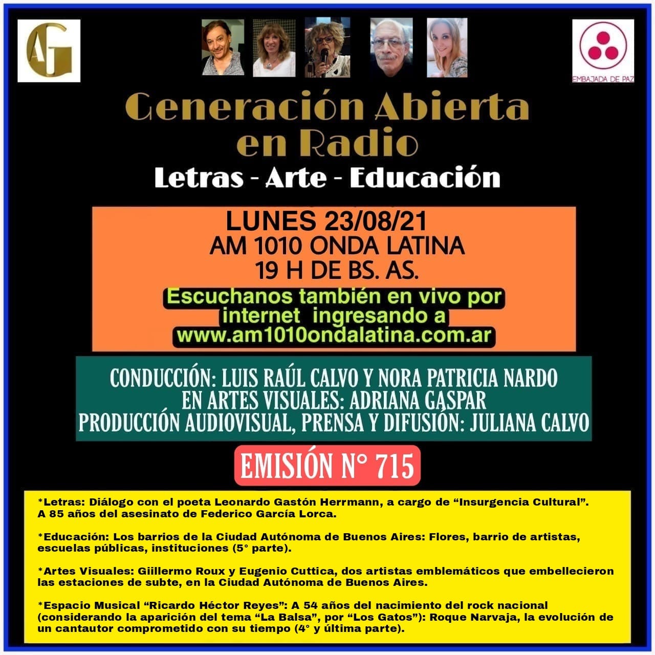 FLYER GENERACIÓN ABIERTA EN RADIO LUNES 23 DE AGOSTO DE 2021