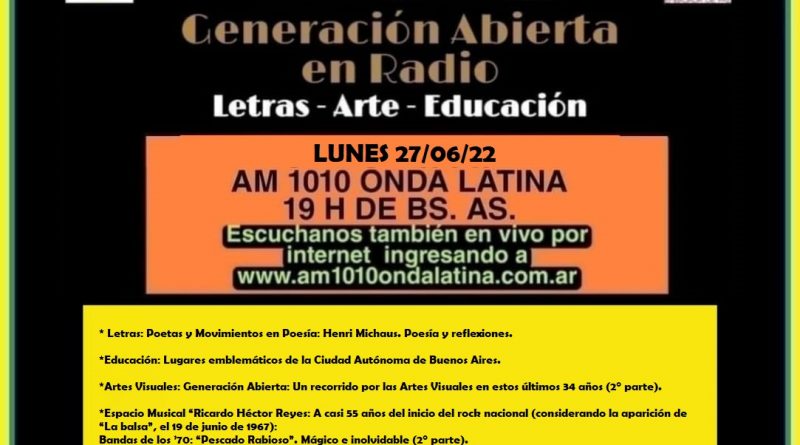 Leer másGeneración Abierta en Radio -Letras-Arte-Educación- Lunes 20 de Junio de 2022, por AM 1010 “Onda Latina” En vivo por internet