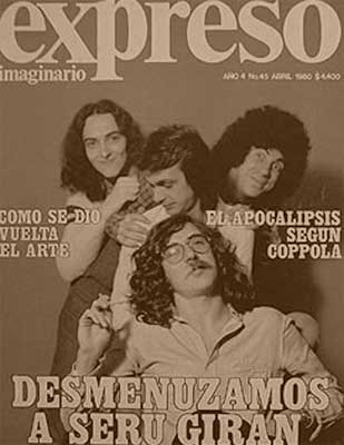 J.P.: Recuerdo que desde la Revista Mordisco ya anunciábamos al Expreso Imaginario, por que yo ya venía sosteniendo que había que hacer una revista que comprendiera mas este pensamiento que estaba surgiendo, no me interesaba solo hablar de los músicos y regalar un póster. Así pasó que cuando cerró la revista yo continuaba con esa idea y en 1975 reúno a un grupo de gente para llevar adelante lo que luego fue el Expreso Imaginario.