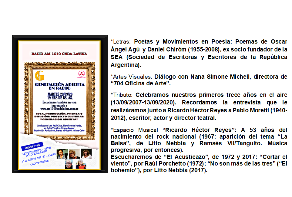 Generación Abierta en Radio: Emisión N° 677, Martes 29 de Septiembre de 2020