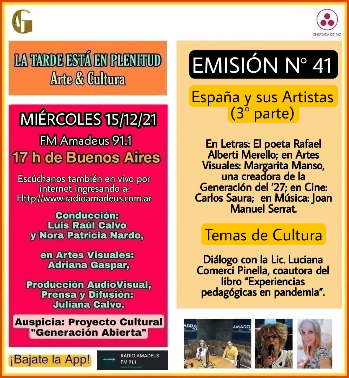 “La Tarde está en Plenitud”, Emisión N° 41, Miércoles 15 de Diciembre de 2021