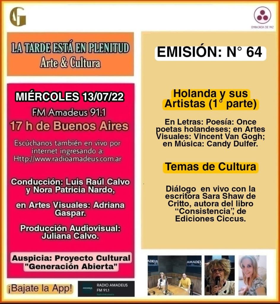 “La Tarde está en Plenitud”, Emisión N° 64, Miércoles 13 de Julio de 2022