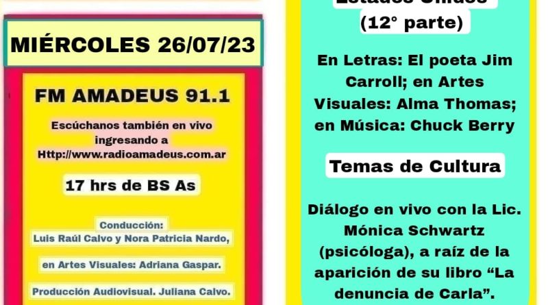 Temas de Cultura: Diálogo en vivo con la Lic. Mónica Schwartz (psicóloga), a raíz de la aparición de su libro “La denuncia de Carla”.