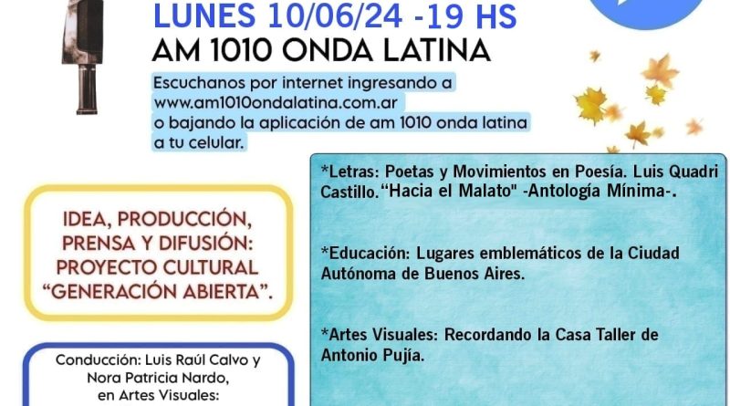 Generación Abierta en Radio: Emisión N° 861, Lunes 10 de Junio de 2024