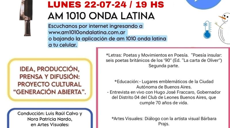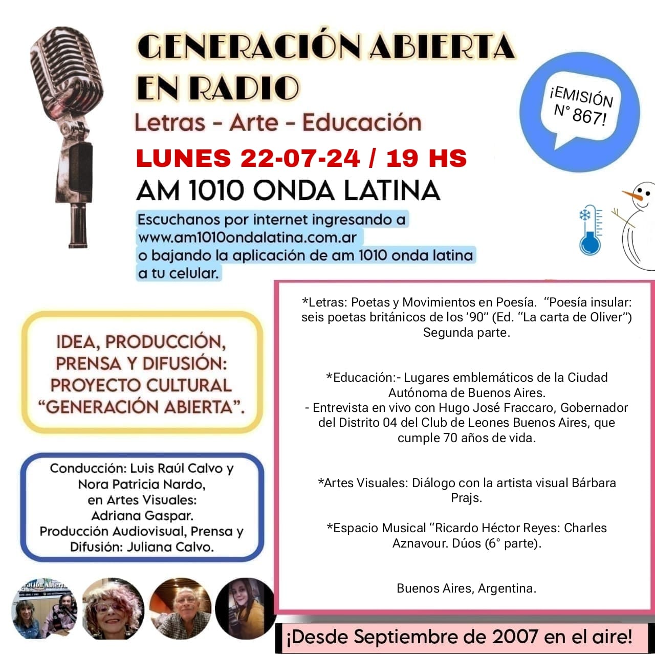 Generación Abierta en Radio: Emisión N° 867, Lunes 22 de Julio de 2024