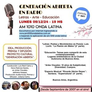 Nació en Buenos Aires, Argentina en 1955. Poeta y ensayista, Lic. en Psicología. Dirige la Revista Cultural “Generación Abierta”, (Letras-Arte-Educación) fundada en el año 1988 y que fuera ”Declarada de Interés Cultural de la Ciudad de Buenos Aires” en el año 2000, por la Legislatura Autónoma de la Ciudad de Buenos Aires. Desde el año 1992 dirige el Café Literario “Antonio Aliberti”, en el Café Montserrat, espacio de Arte y Literatura que ha propiciado la participación de más de 1000 escritores y 500 artistas plásticos de suma valía, del país y del exterior. Co-organizador del “Encuentro de la Poesía Argentina”, ciclo que se realizó de 1992 a 1996 en el Centro Cultural Catedral, en el Foro 2000 y en la Dirección General de Bibliotecas Municipales y que convocó a los poetas más representativos de nuestro país. Entre 1995 y 1997 coordinó los Talleres Literarios de las Bibliotecas “Evaristo Carriego” y “Guido Spano”, dependientes de la Dirección General de Bibliotecas Municipales. Co-organizador desde el año 1996 del ciclo “Poesía en la Calle”, evento realizado en distintas plazas de la Ciudad de Buenos Aires y del Gran Buenos Aires, con la participación de poetas consagrados, poetas nóveles, artistas plásticos, músicos. De 1997 a 2001 tuvo a cargo la Promoción Cultural del Centro Cultural “Roberto Santoro”, dependiente de la Dirección General de Promoción Cultural del Gobierno de la Ciudad de Buenos Aires. Es miembro de la Asociación de Poetas Argentinos. Integró la Comisión Directiva de la Fundación Argentina para la Poesía. Colabora en diversas publicaciones del país y del exterior. Poemas suyos han sido traducidos al inglés, al francés, al portugués, al italiano y al rumano. Ha recibido diversas distinciones literarias. Forma parte del Inventario de Poetas en Lengua Española -segunda mitad del siglo XX- trabajo de investigación realizado conjuntamente por la Universidad Autónoma de Madrid con la Asociación Prometeo de Poesía, de España. Ha sido incluido en más de veinte antologías poéticas del país y del exterior. Forma parte del Breve Diccionario Biográfico de Autores Argentinos -desde 1940- realizado por Silvana Castro y Pedro Orgambide, Ed. Atril, 1999. Integra diversos sitios web de poesía. Libros publicados: - "Profane Uncertainties (Profana Incertidumbre)." , Autor, Genero: Poesía, Editorial: Cervená Barva Press 2010, Lugar Estados Unidos. - "Nada por aquí, nada por allá" , Autor, Genero: Poesía, Editorial: Ediciones Generación Abierta 2009, Lugar Buenos Aires. - "Nimic Pentru Aici, Nimic Petru Dincolo. (Nada por aquí, nada por allá)." , Autor, Genero: Poesía, Editorial: Editura Gens Latina 2009, Lugar Rumania. - "Belleza Nomade" , Autor, Genero: Poesía, Editorial: Ediciones Generación Abierta 2007, Lugar Buenos Aires. - "Tiempos Diluidos", Co-autor, Género: Poesía, Editorial: Ediciones Generación Abierta 2006, Lugar Buenos Aires. - "Bajos fondos del alma", Autor, Genero: Poesía, Editorial: Ediciones Generación Abierta 2002, Lugar Buenos Aires. - "Calles asiáticas", Autor, Género: Poesía, Editorial: Plus Ultra 1996, Lugar Buenos Aires. - "La anunciación de la partera", Autor, Género: Poesía, Editorial: Ediciones Correo Latino 1992, Lugar Buenos Aires. - "Tiempo dolorosamente resignado", Autor, Género: Poesía, Editorial: Ediciones Generación Abierta 1989, Lugar Buenos Aires.