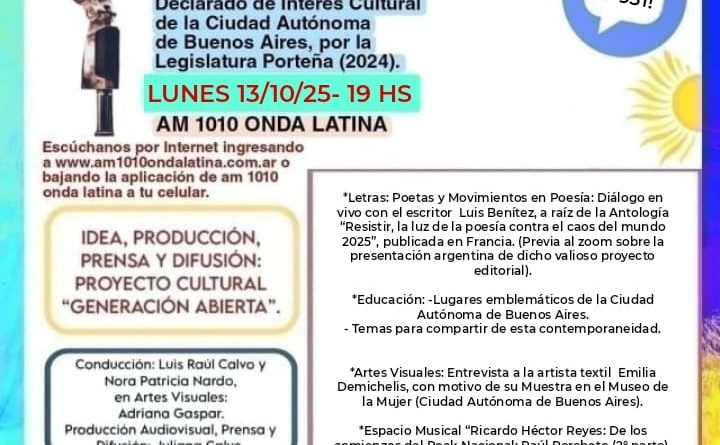 Generación Abierta en Radio: Emisión N° 931, Lunes 13 de Octubre de 2025