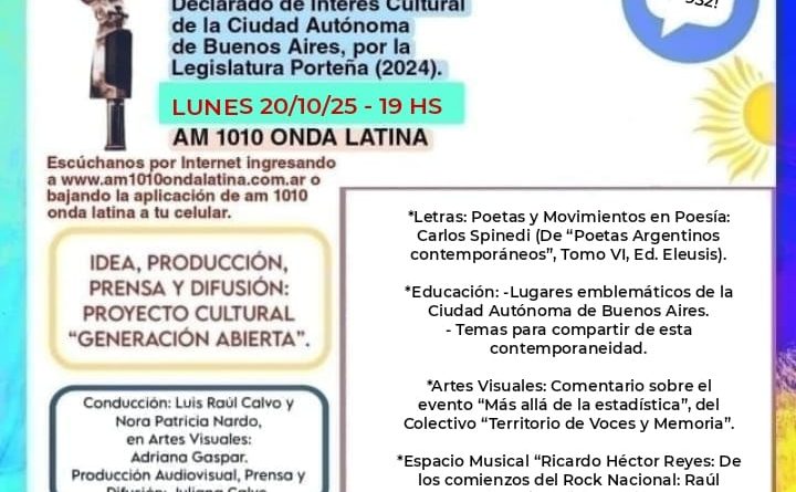 Generación Abierta en Radio: Emisión N° 932, Lunes 20 de Octubre de 2025