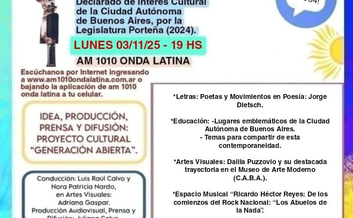 Generación Abierta en Radio: Emisión N° 934, Lunes 03 de Noviembre de 2025