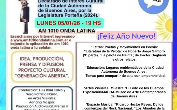 Generación Abierta en Radio: Emisión N° 942, Lunes 05 de Enero de 2026