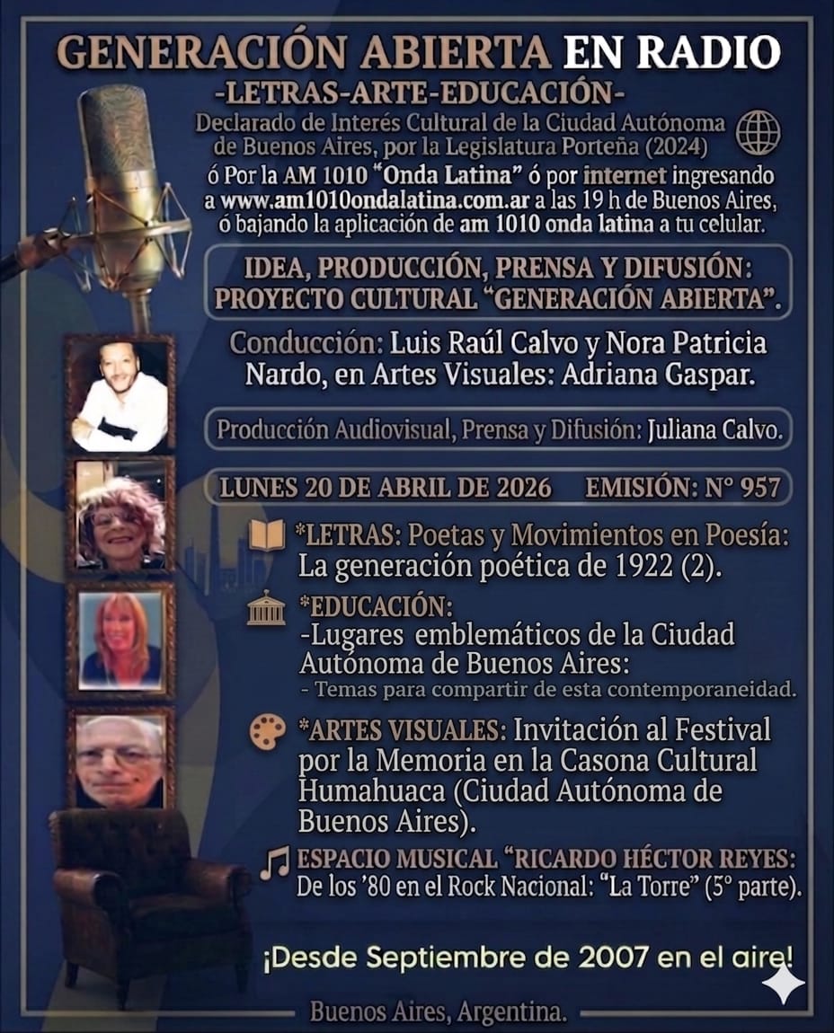 Generación Abierta en Radio: Emisión N° 957, Lunes 20 de Abril de 2026