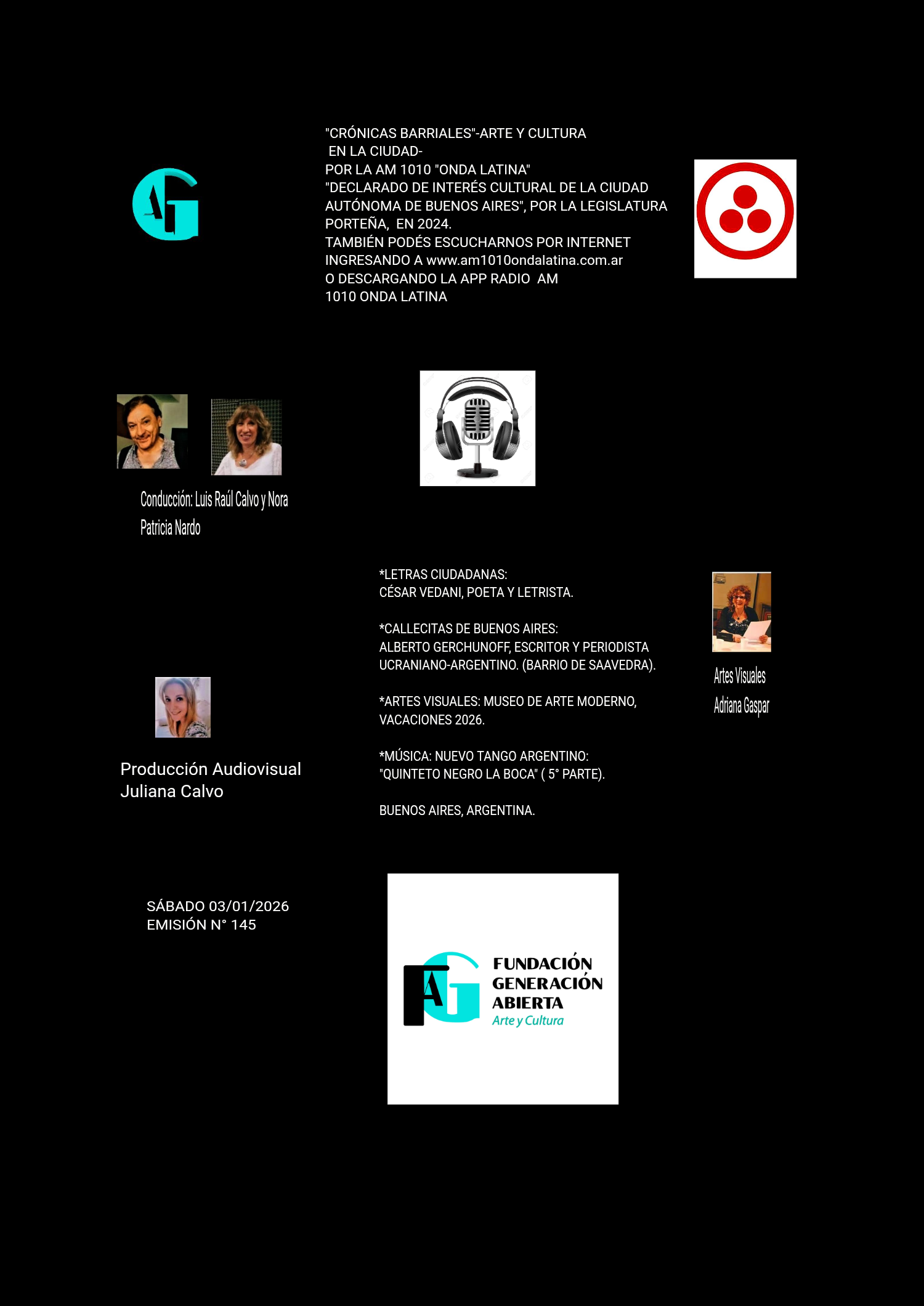RADIO AM 1010 “ONDA LATINA” o por internet ingresando a www.am1010ondalatina.com.ar