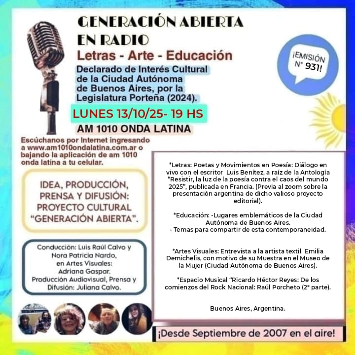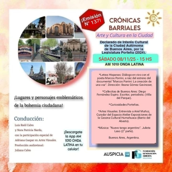 RADIO AM 1010 “ONDA LATINA” o por internet ingresando a www.am1010ondalatina.com.ar