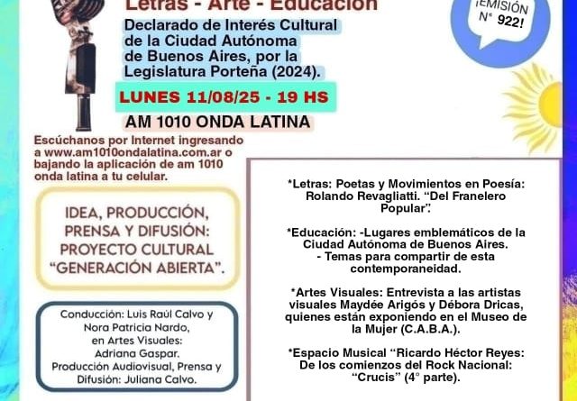 Generación Abierta en Radio: Emisión N° 928, Lunes 22 de Septiembre de 2025
