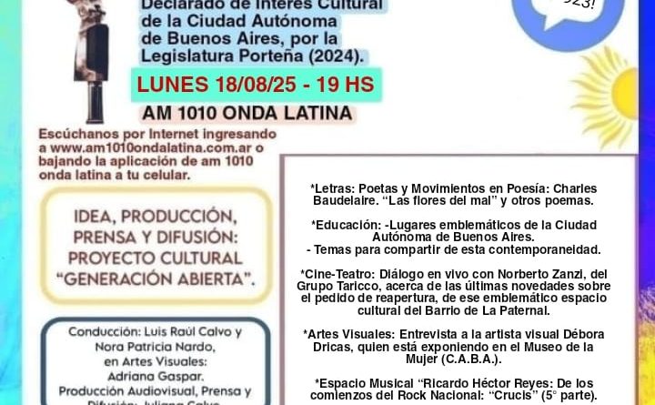 “Generación Abierta en Radio” -Letras-Arte-Educación- Declarado de Interés Cultural de la Ciudad Autónoma de Buenos Aires, por la Legislatura Porteña